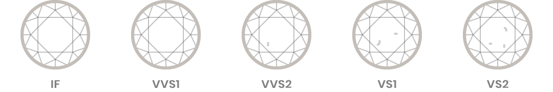 There are two types of clarity characteristics: inclusions and blemishes. In order to grade the clarity of a diamond, it is necessary to observe the number and nature of external and internal characteristics of the stone, as well as their size and position. The difference is based on their locations: inclusions are enclosed within a diamond, while blemishes are external characteristics. IGI grading reports show plotted diagrams of clarity characteristics marked in red for internal and green for external features.
