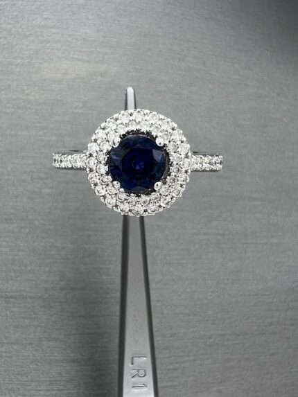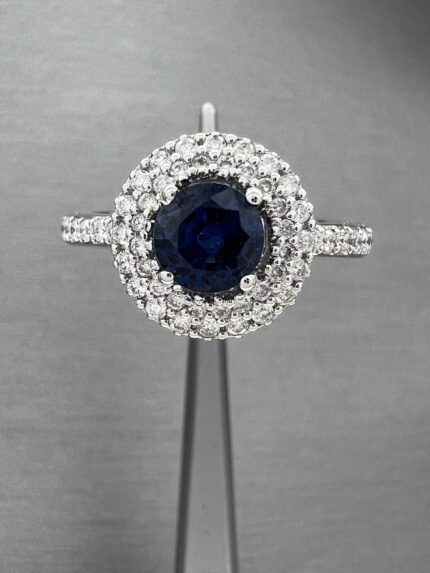 18K White Gold Ring with Natural Sapphire 0,95ct and Diamonds 0,47ct