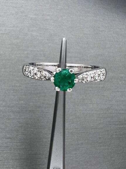 18K White Gold Ring with Natural Emerald 0,29ct and Diamons 0,20ct