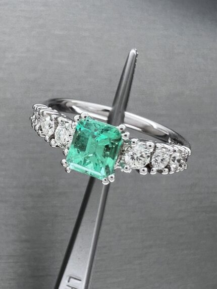 18K White Gold Ring with Natural Emerald 0,74ct and Diamonds 0,34ct