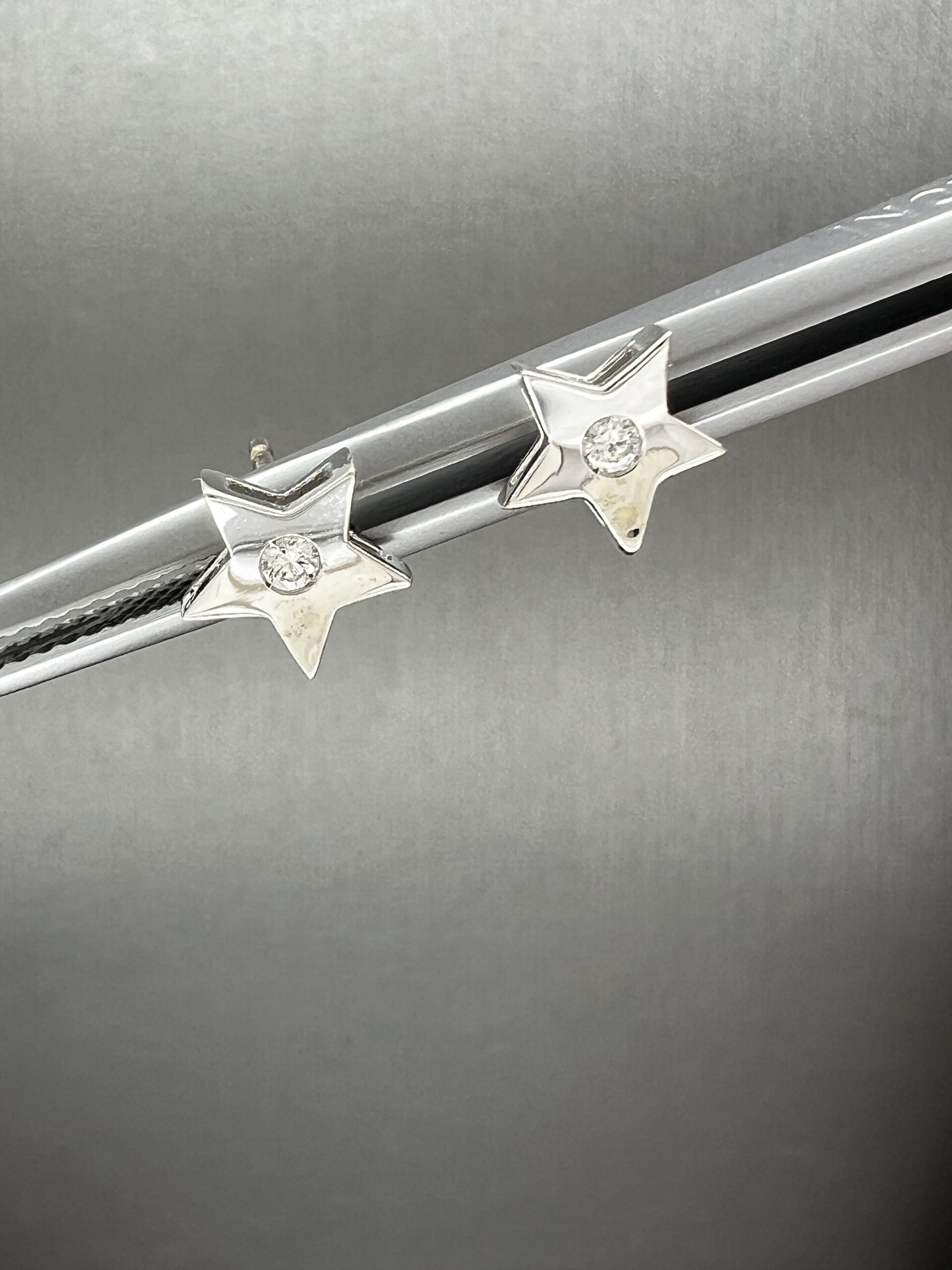 18K White Gold Star Earrings with Natural Diamonds 0,06ct,F,VVS