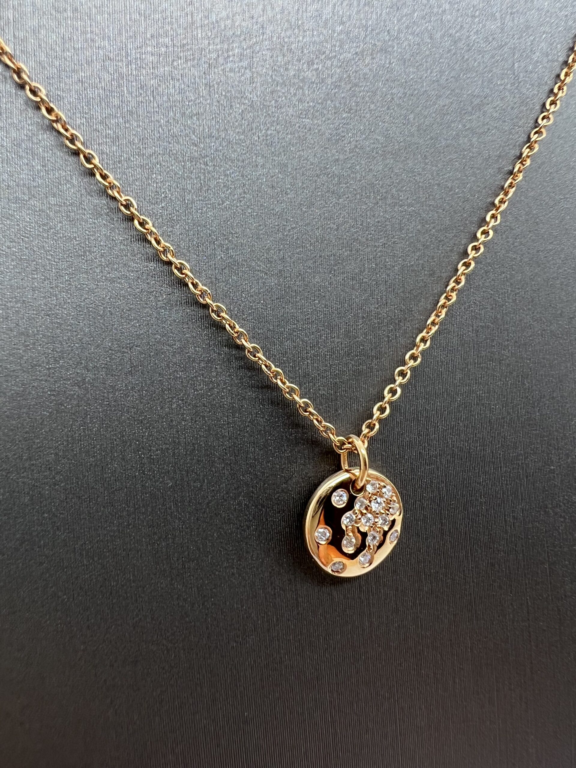 18K Rose Gold Cirkle Necklace with natural Diamonds 0,11ct,F,VVS
