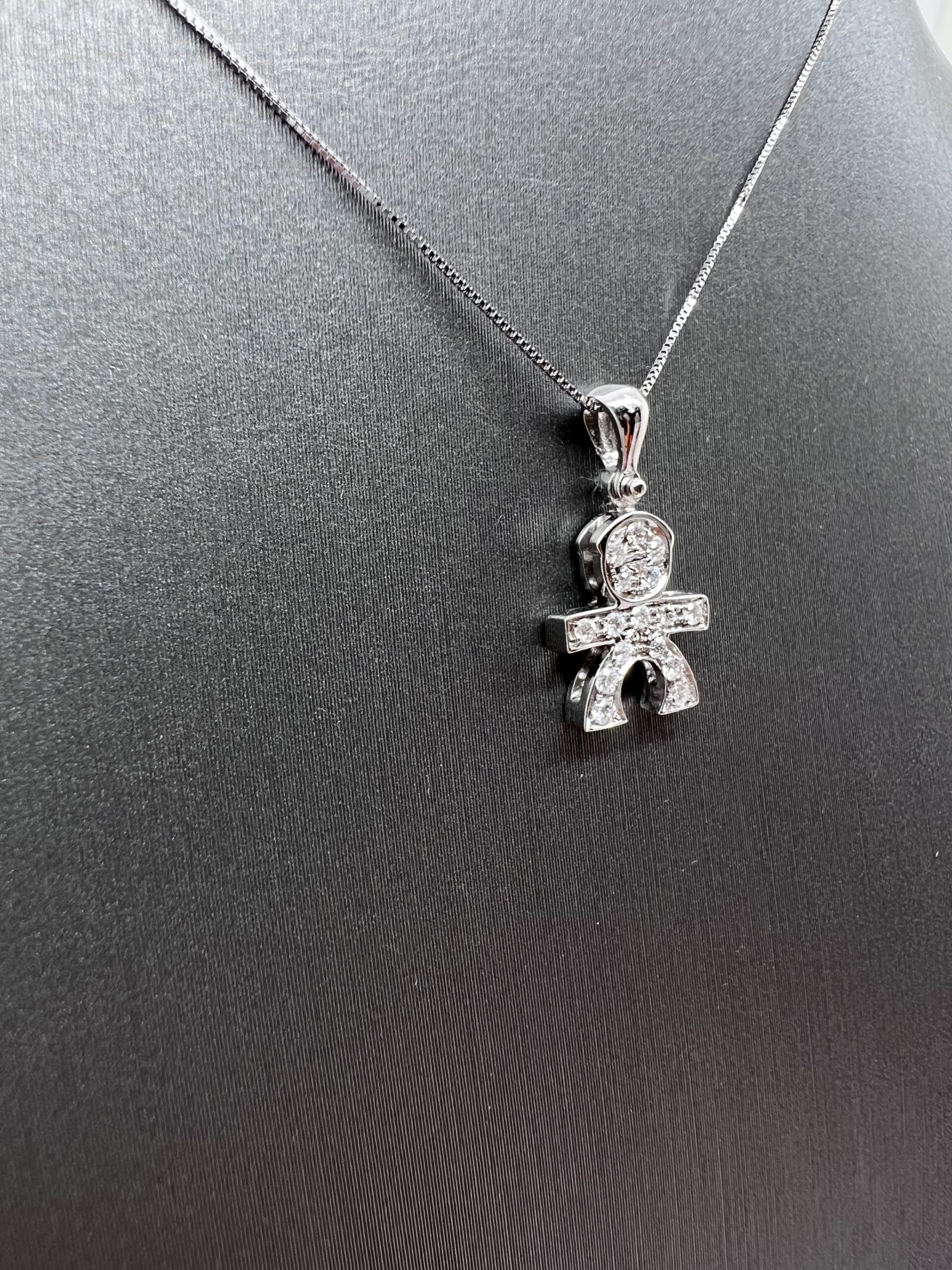 18K White Gold Baby Boy Necklace with Natural Diamonds 0,13ct,F,VVS