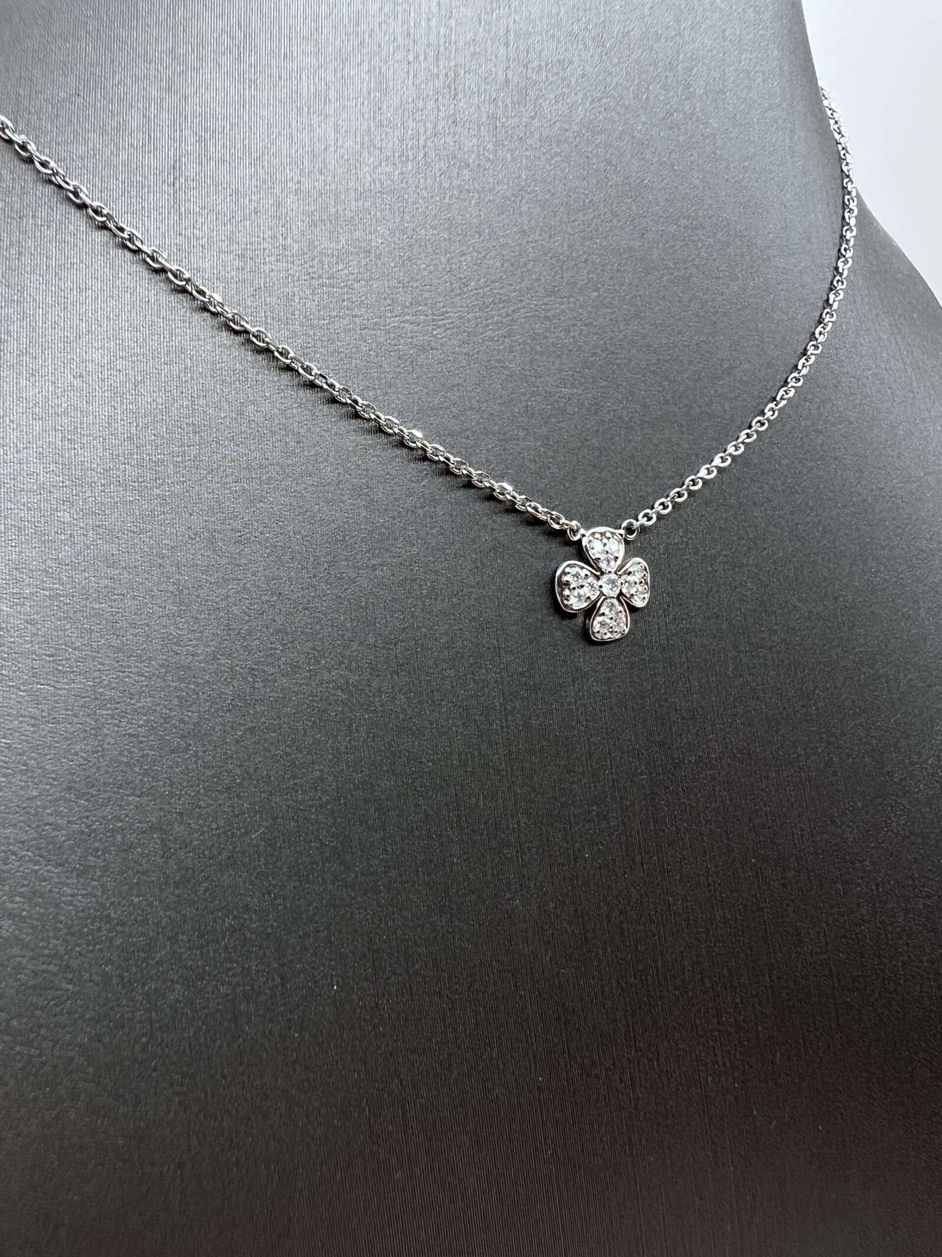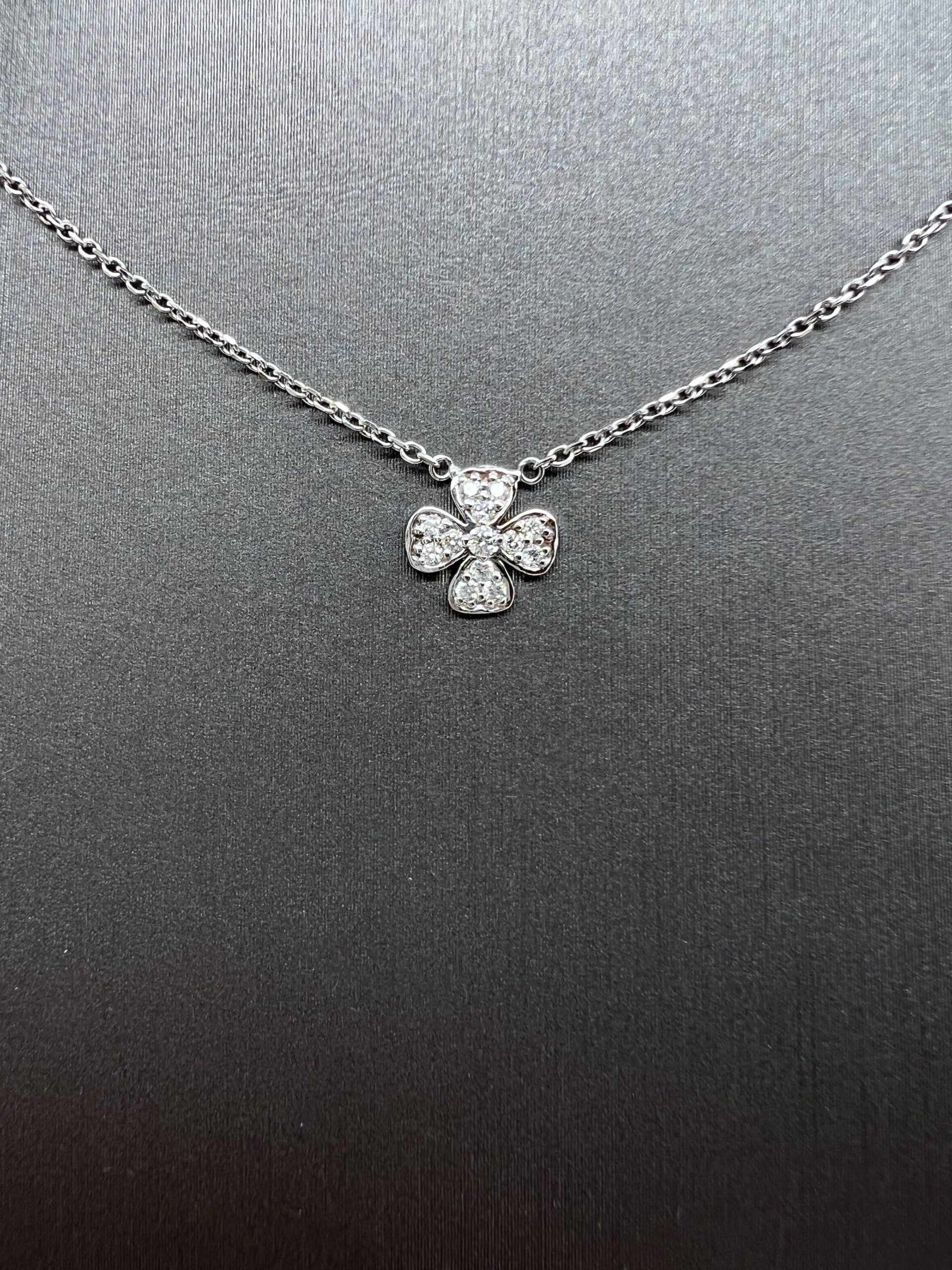 18K White Gold Flower Necklace with Natural Diamonds 0,12ct,F,VVS