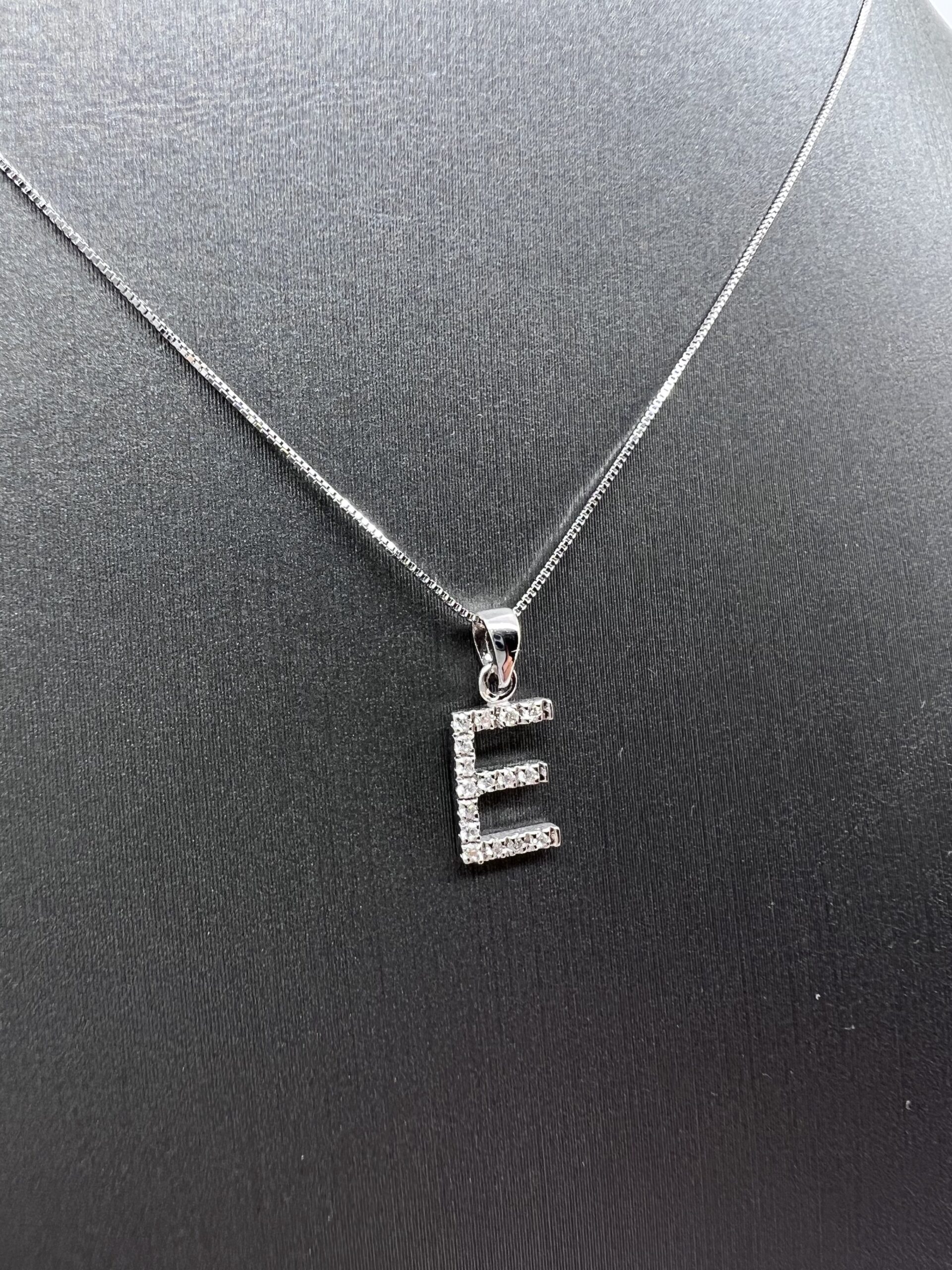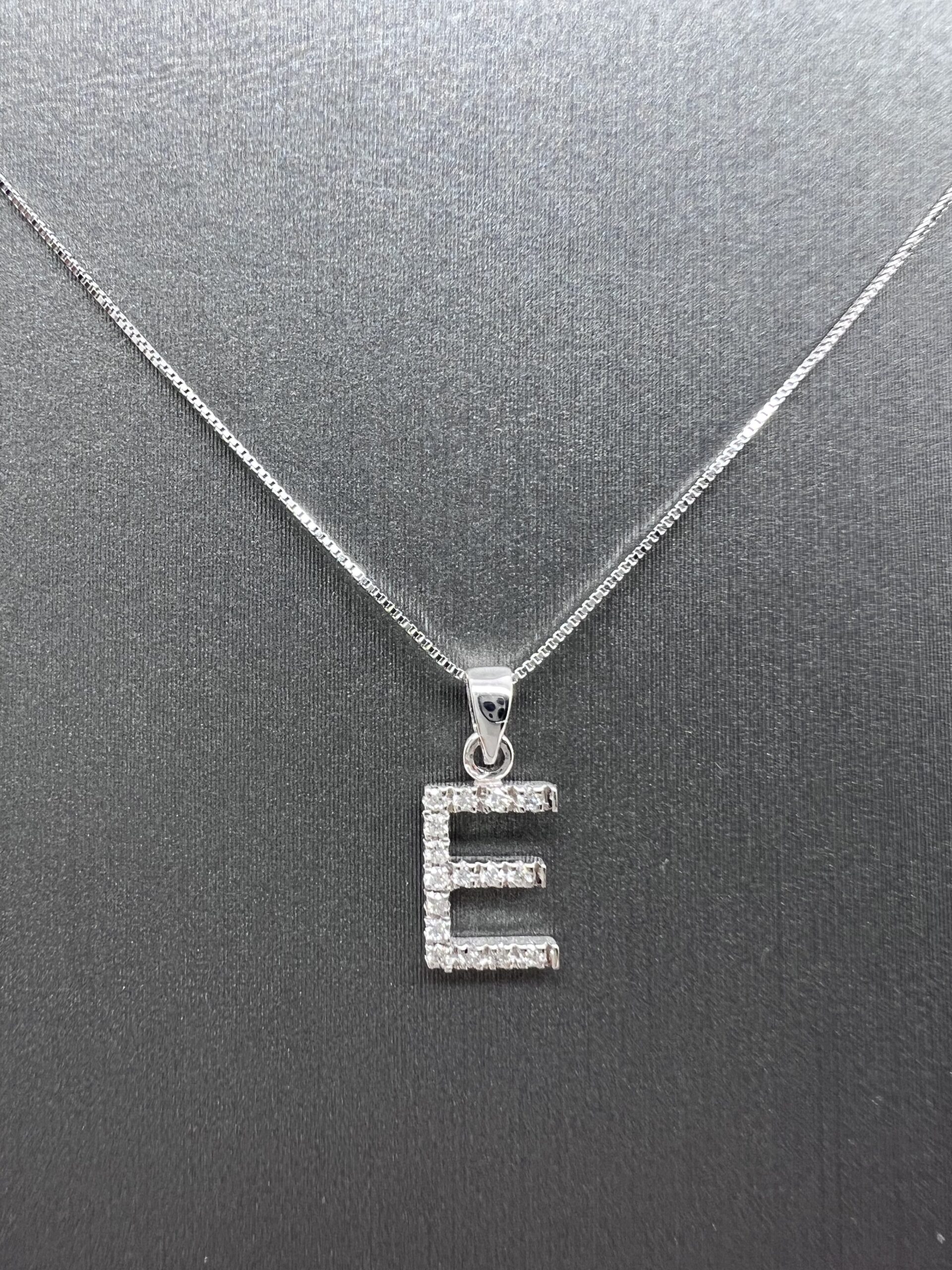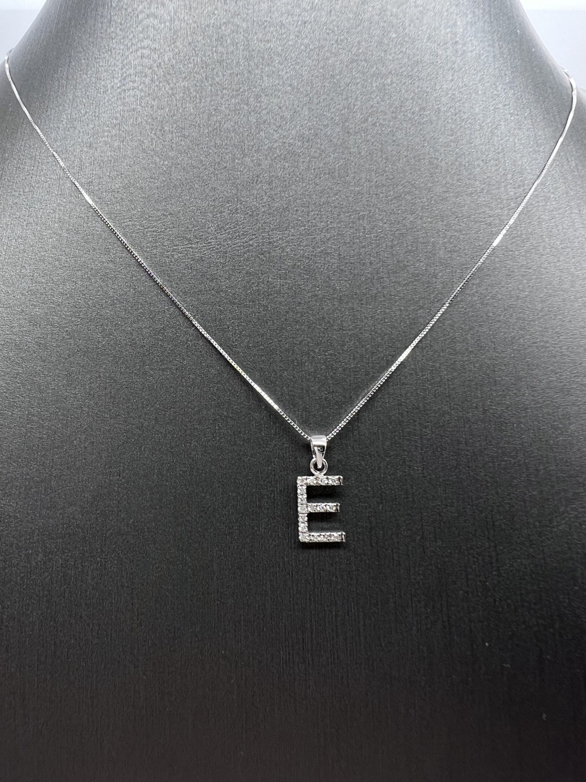 18K White Gold Letter E Necklace with Natural Diamonds 0,06ct,F,VVS