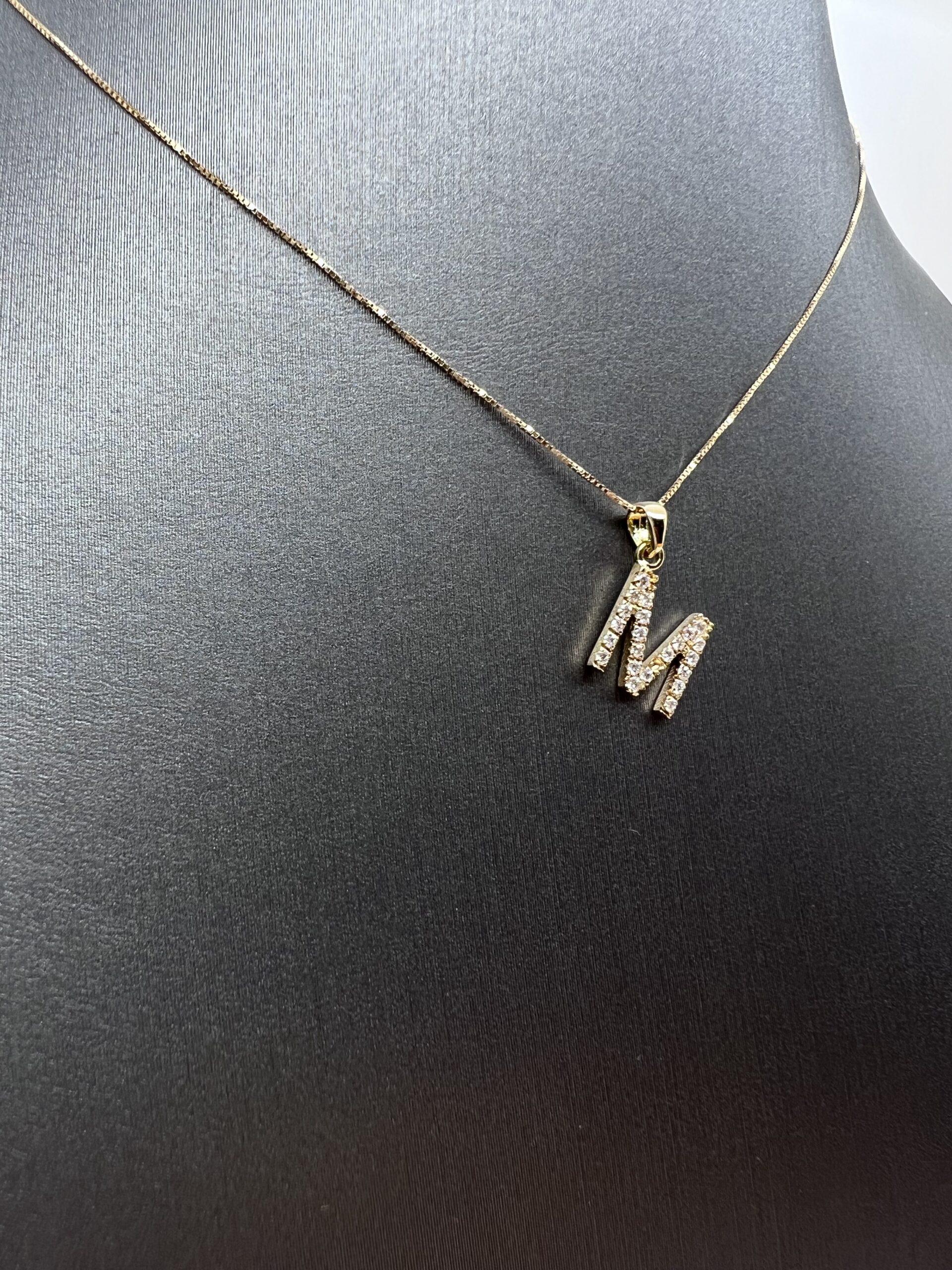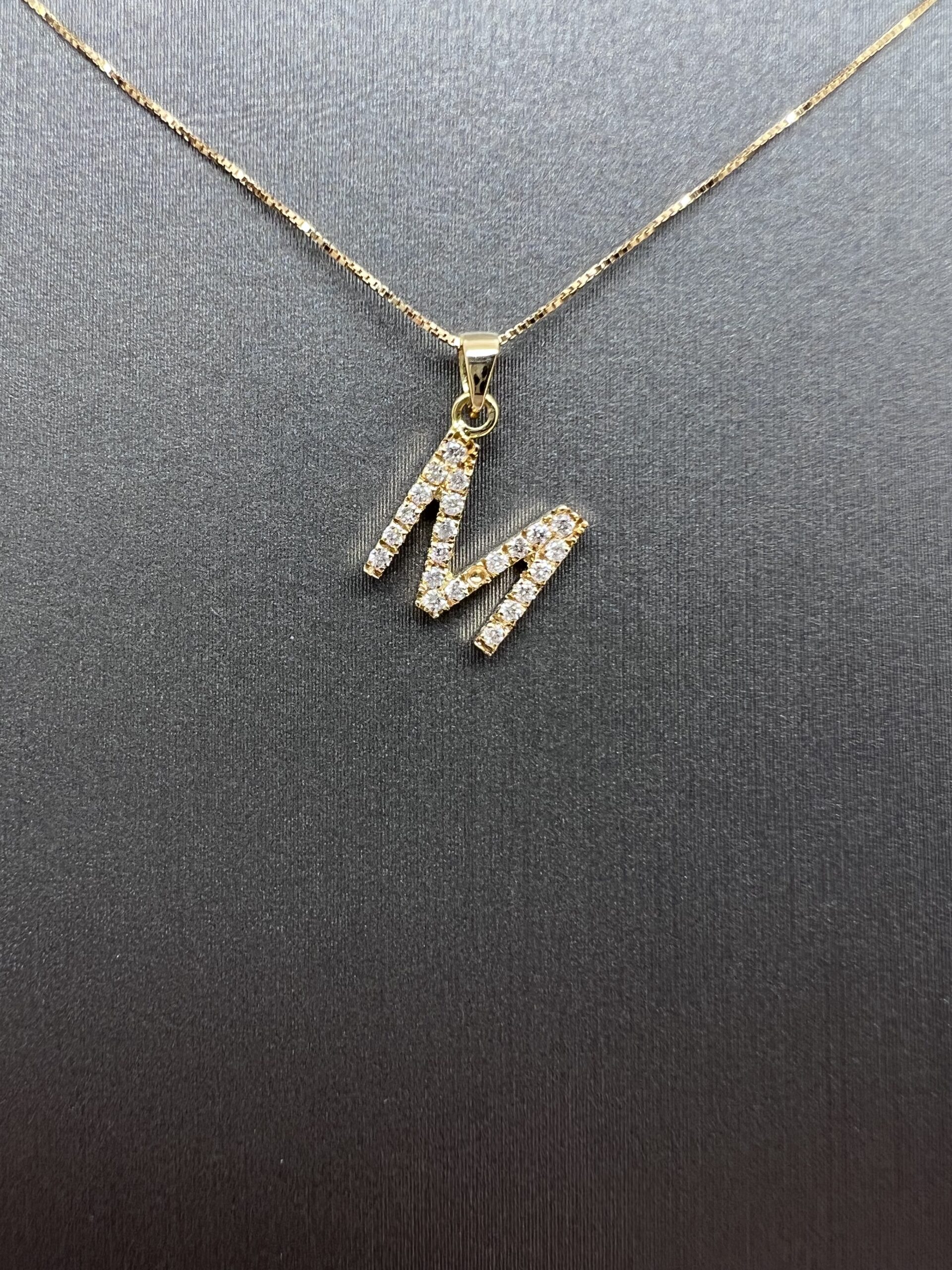 18K Yellow Gold Letter M Necklace with Natural Diamonds 0,11ct,F,VVS