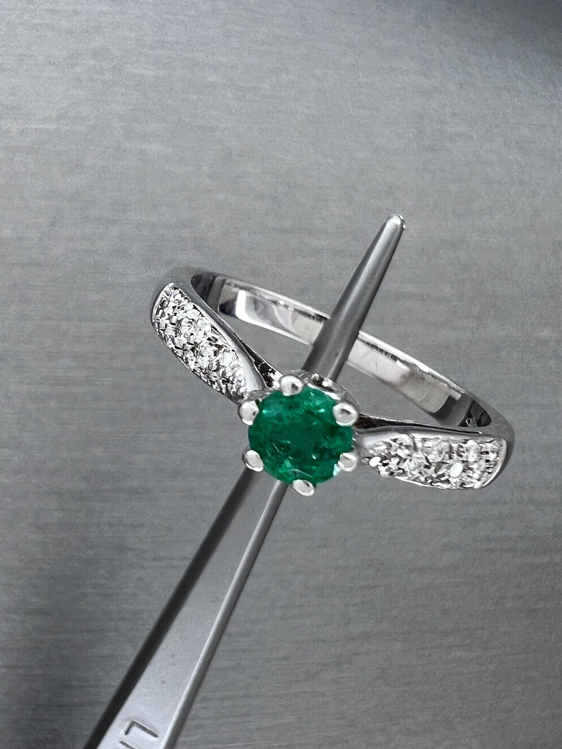 18K White Gold Ring with Natural Emerald 0,29ct and Diamons 0,20ct,F,VVS