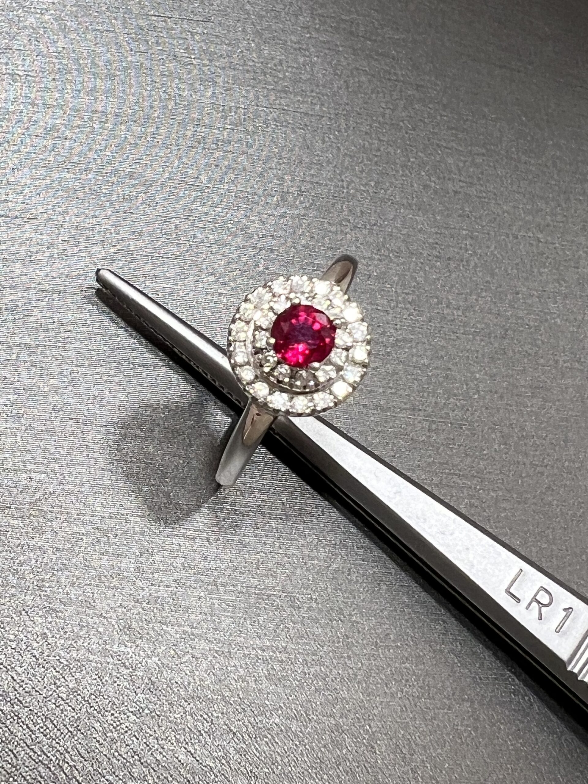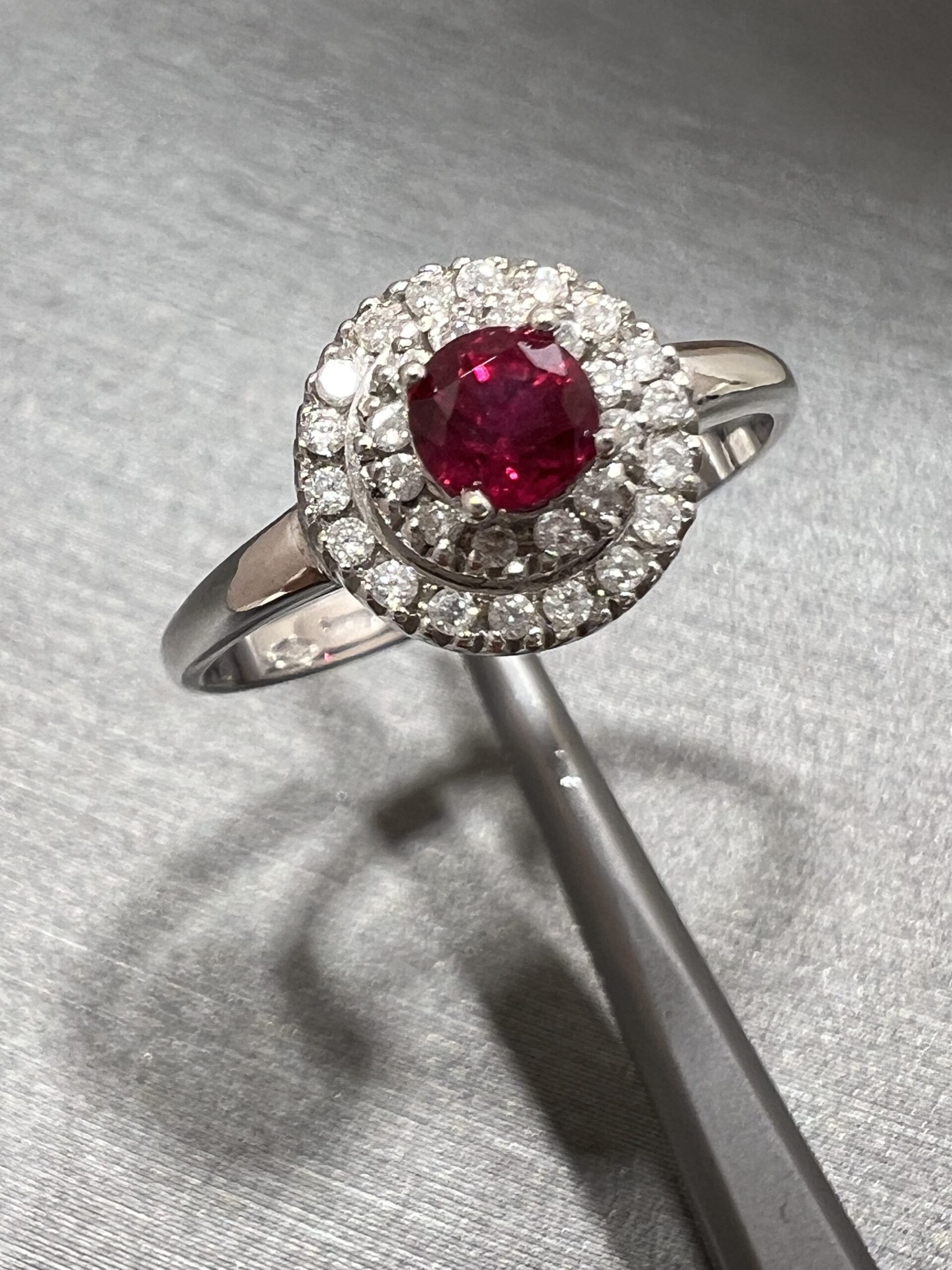 18K White Gold Ring with Natural Ruby 0,45ct and Diamond 0,17ct,F,VVS