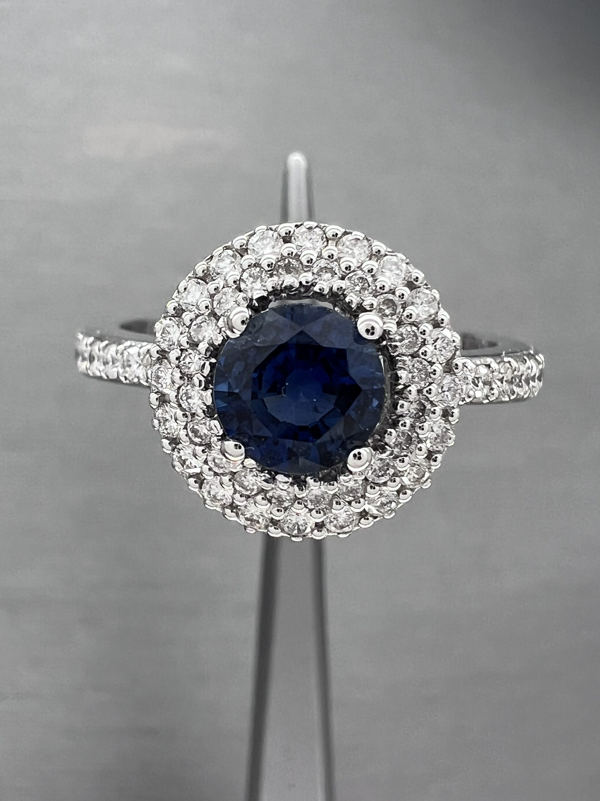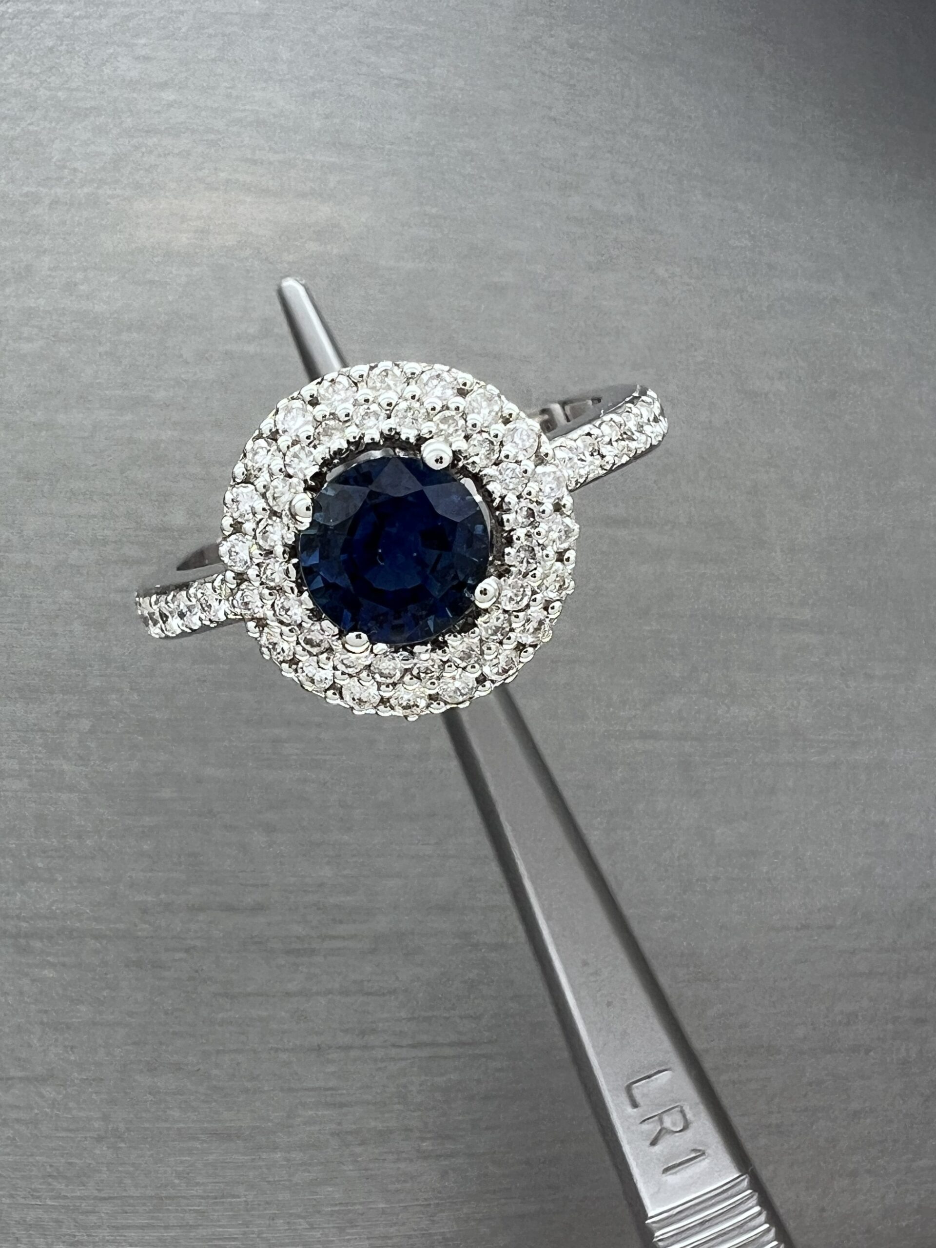 18K White Gold Ring with Natural Sapphire 0,95ct and Diamonds 0,47ct
