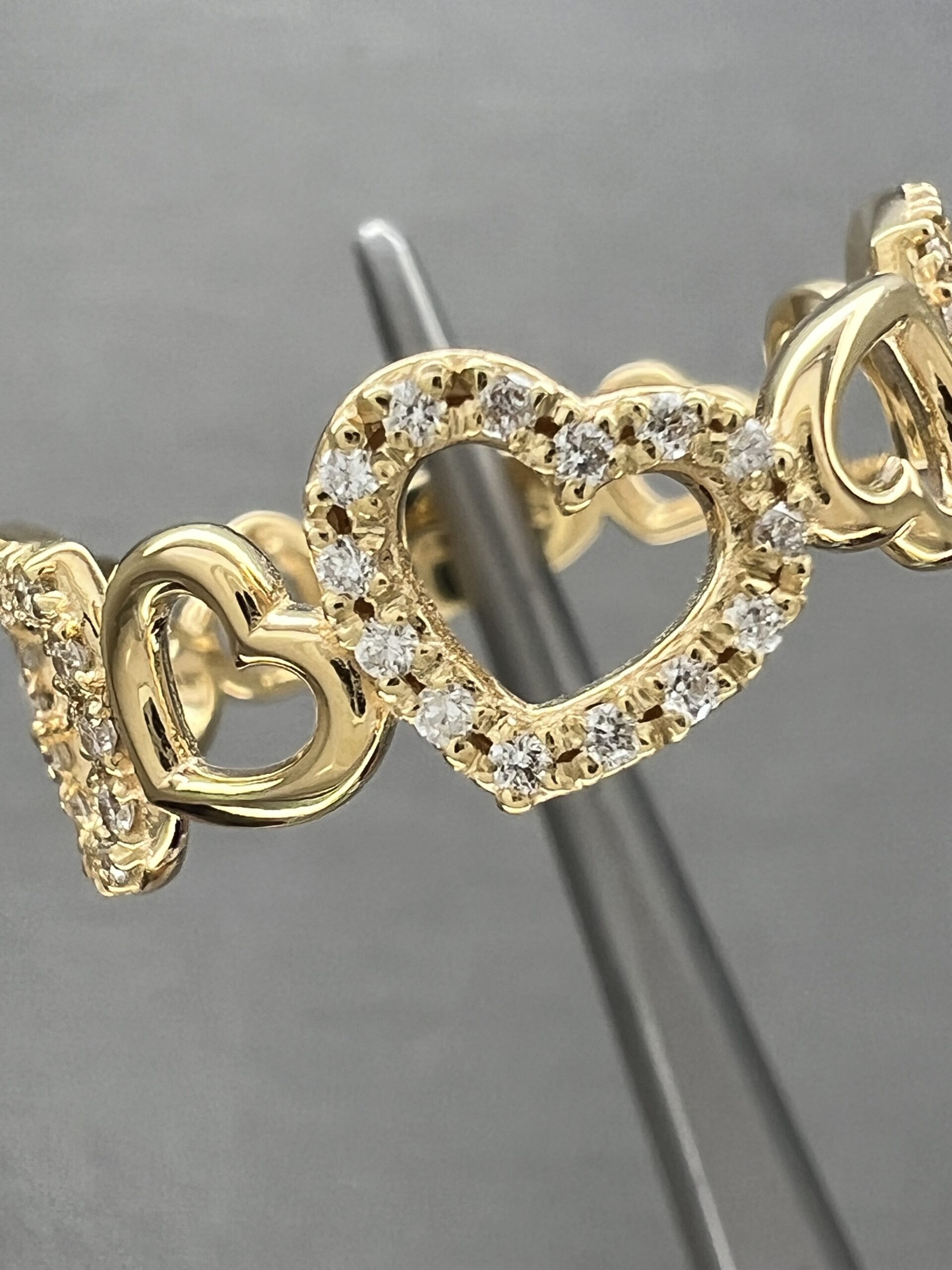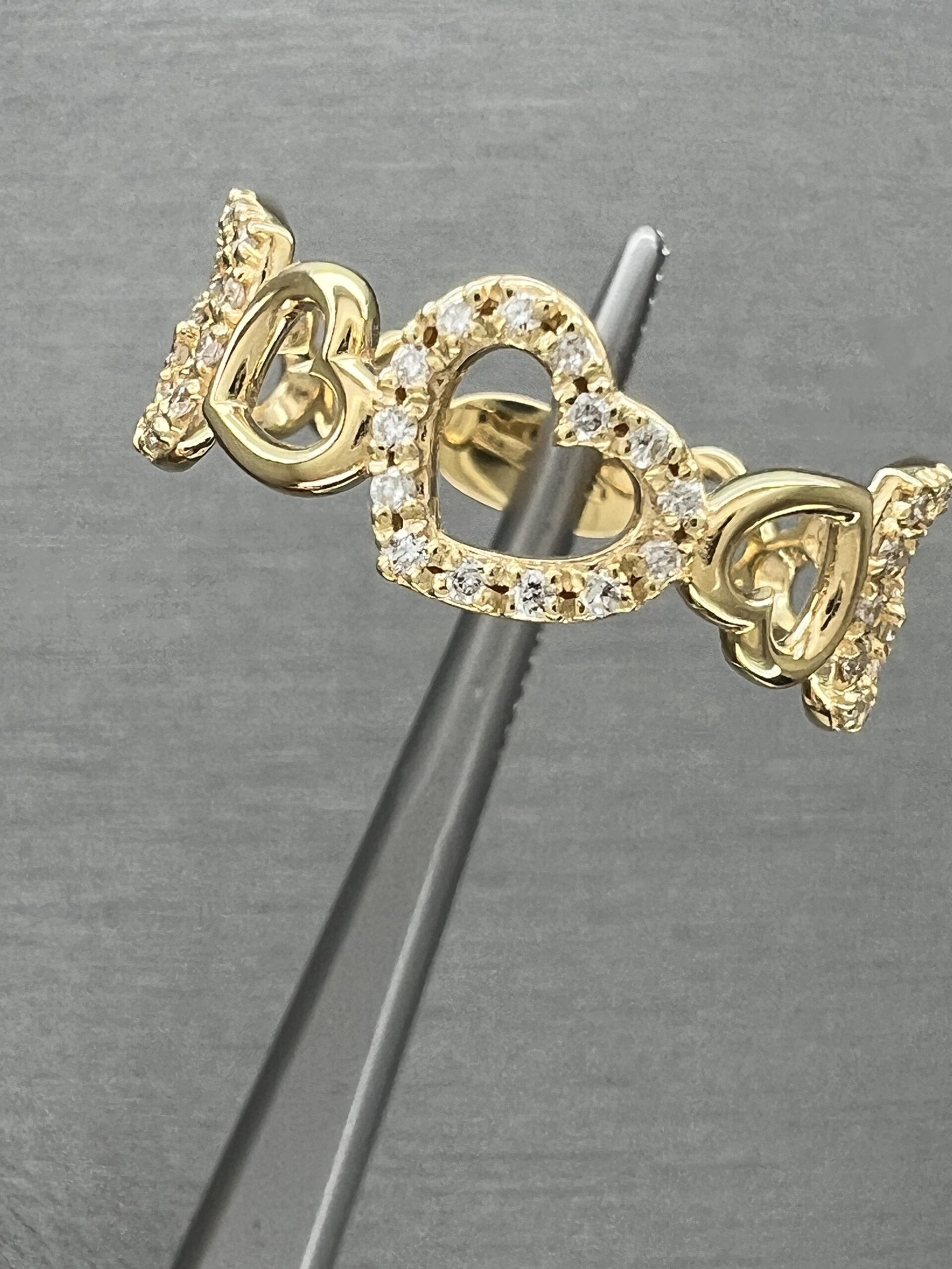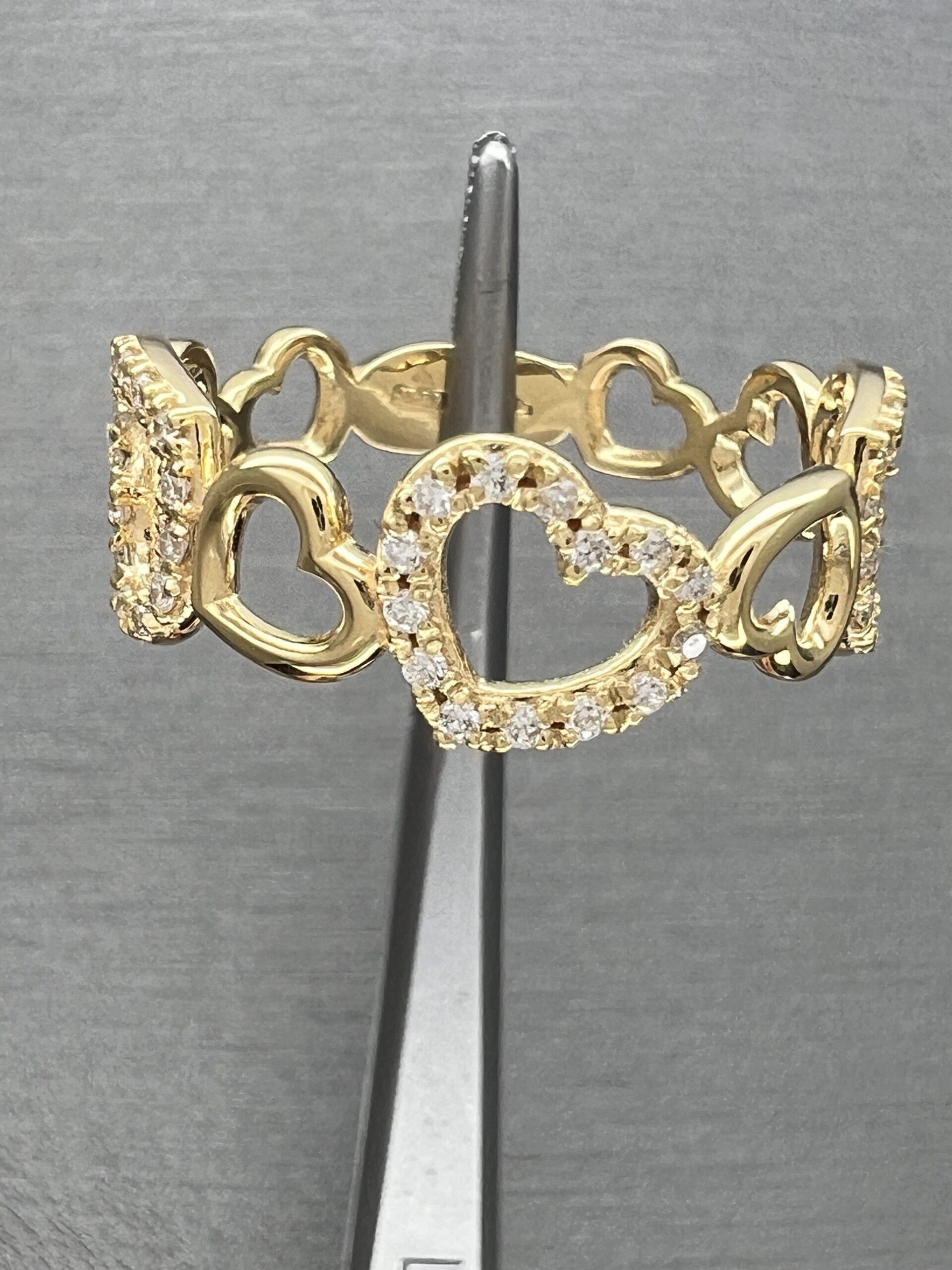 18K Yellow Gold Hearts Ring with Natural Diamonds 0,19ct,F,VVS