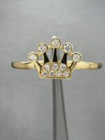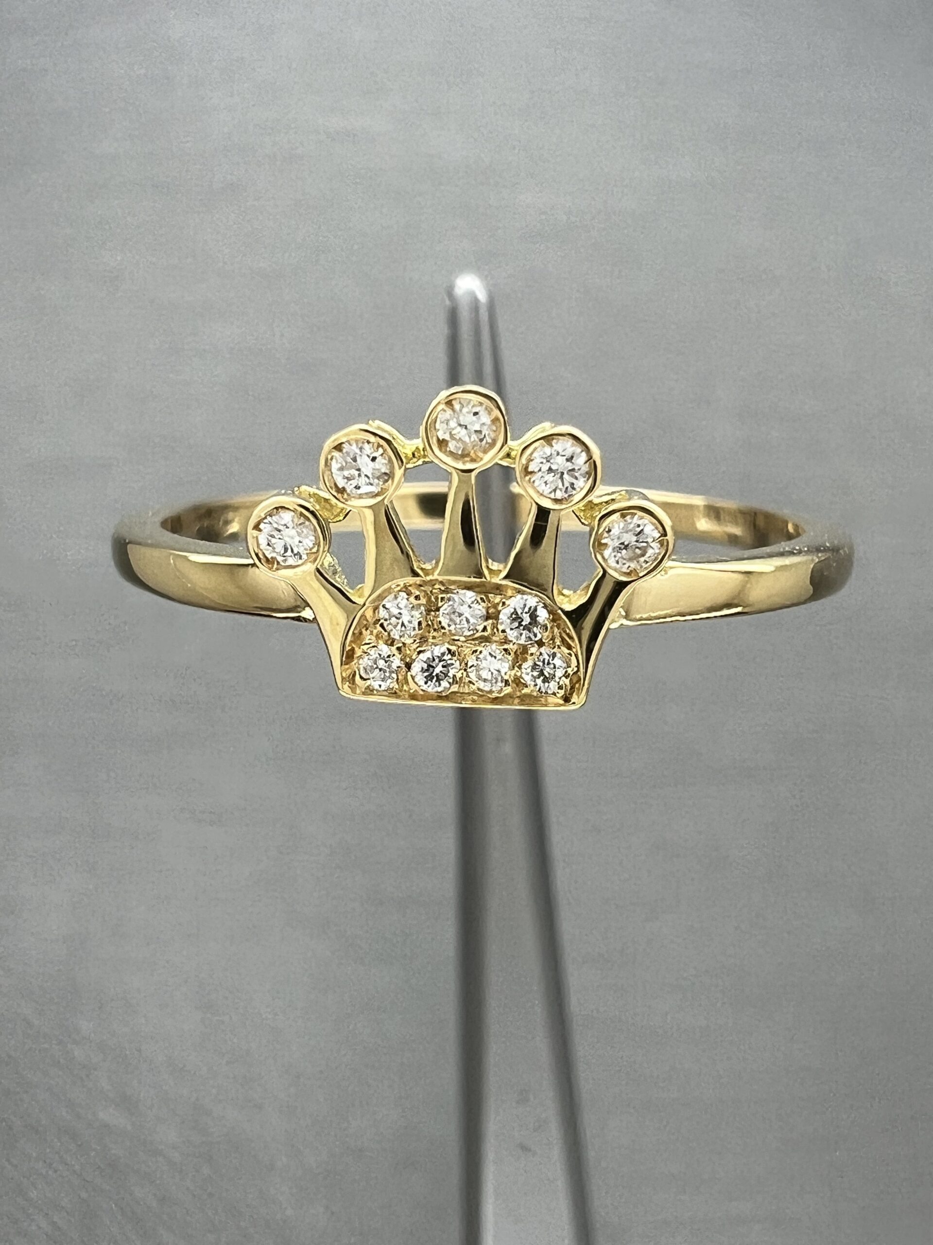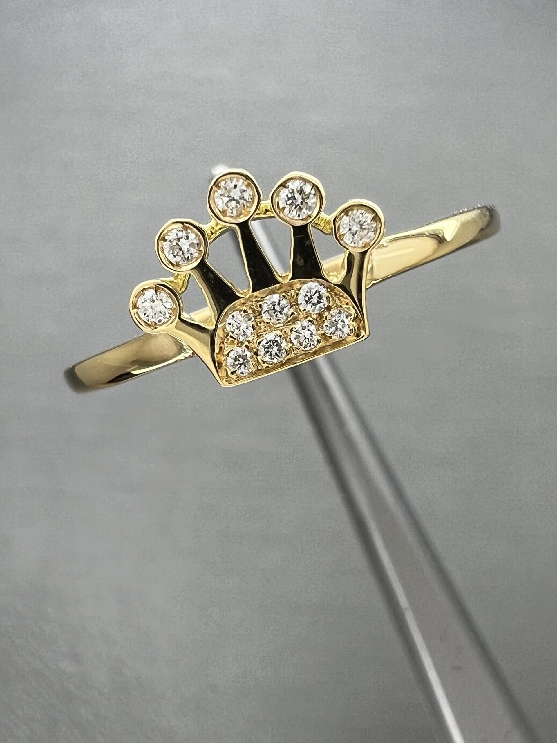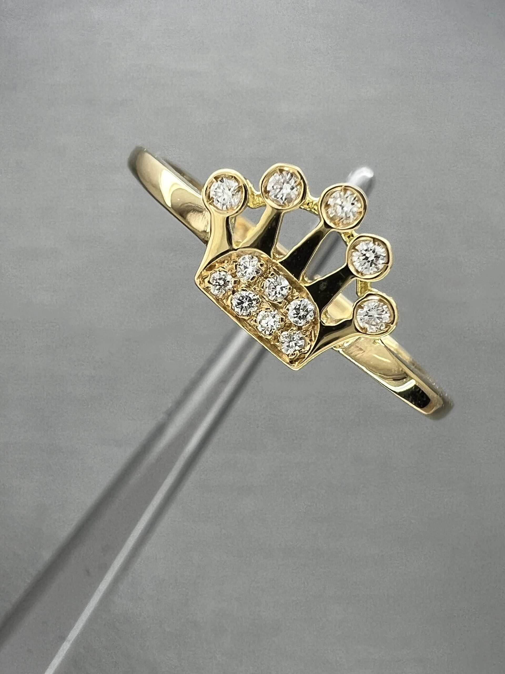 18K Yellow Gold Crown Ring with Natural Diamonds 0,06ct,F,VVS