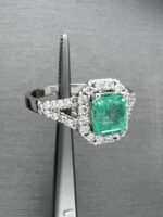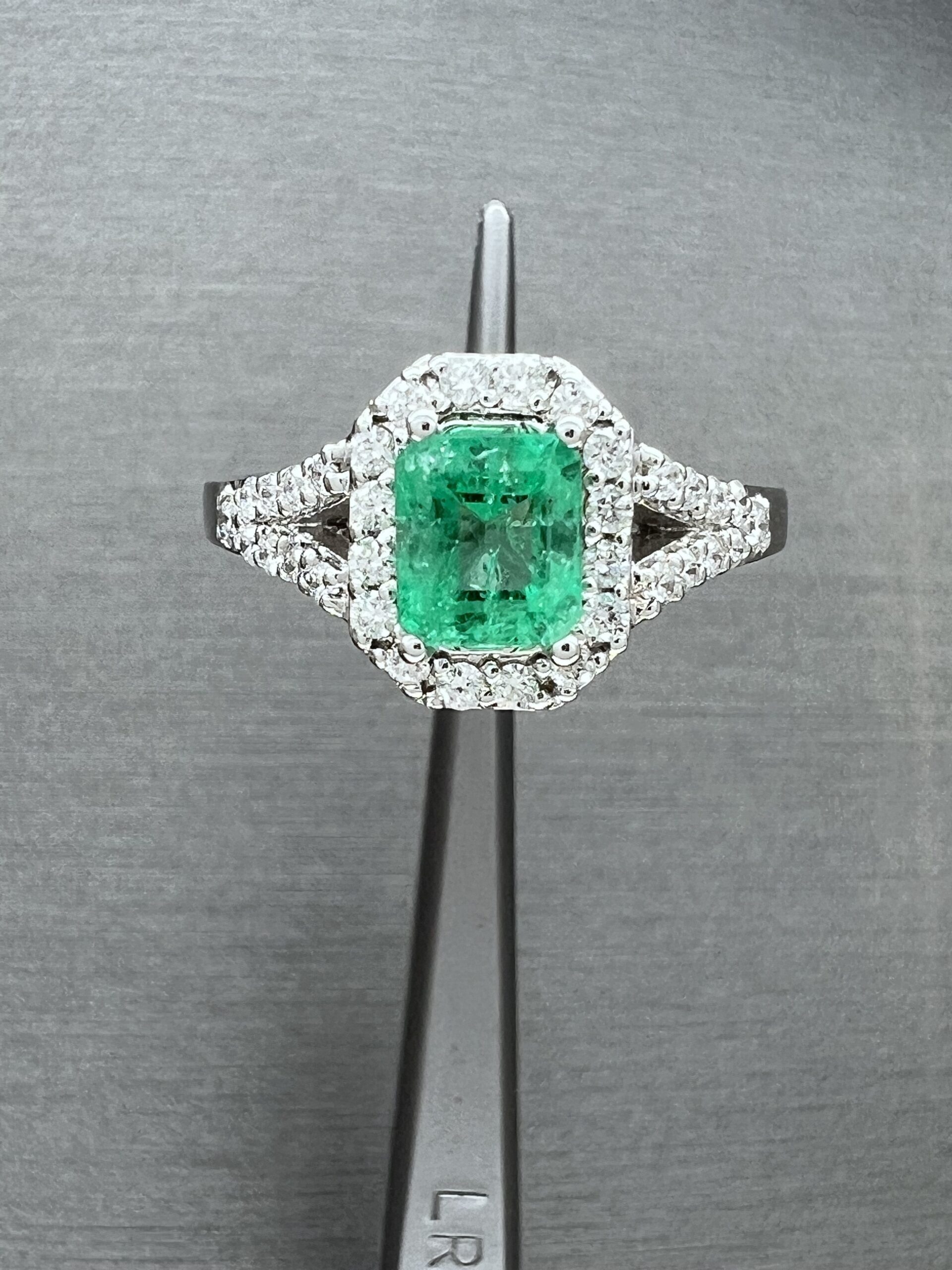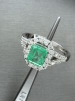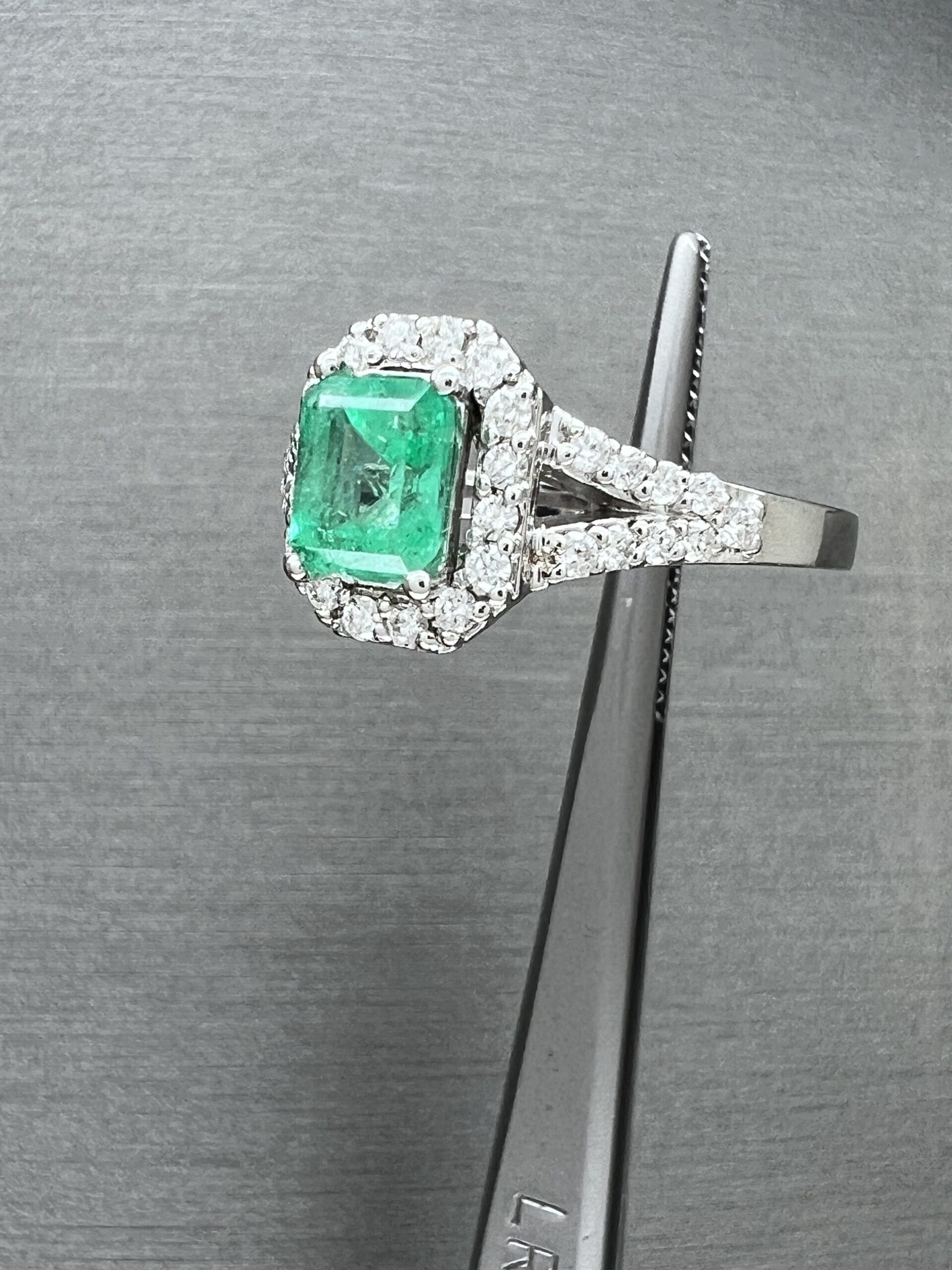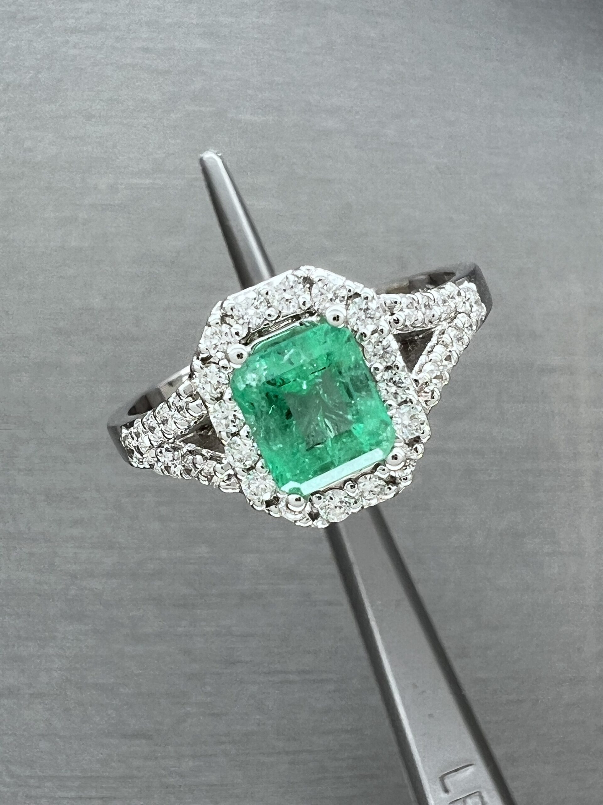 18K White Gold Ring with Natural Emerald 0,66ct and Diamonds 0,31ct,F,VVS