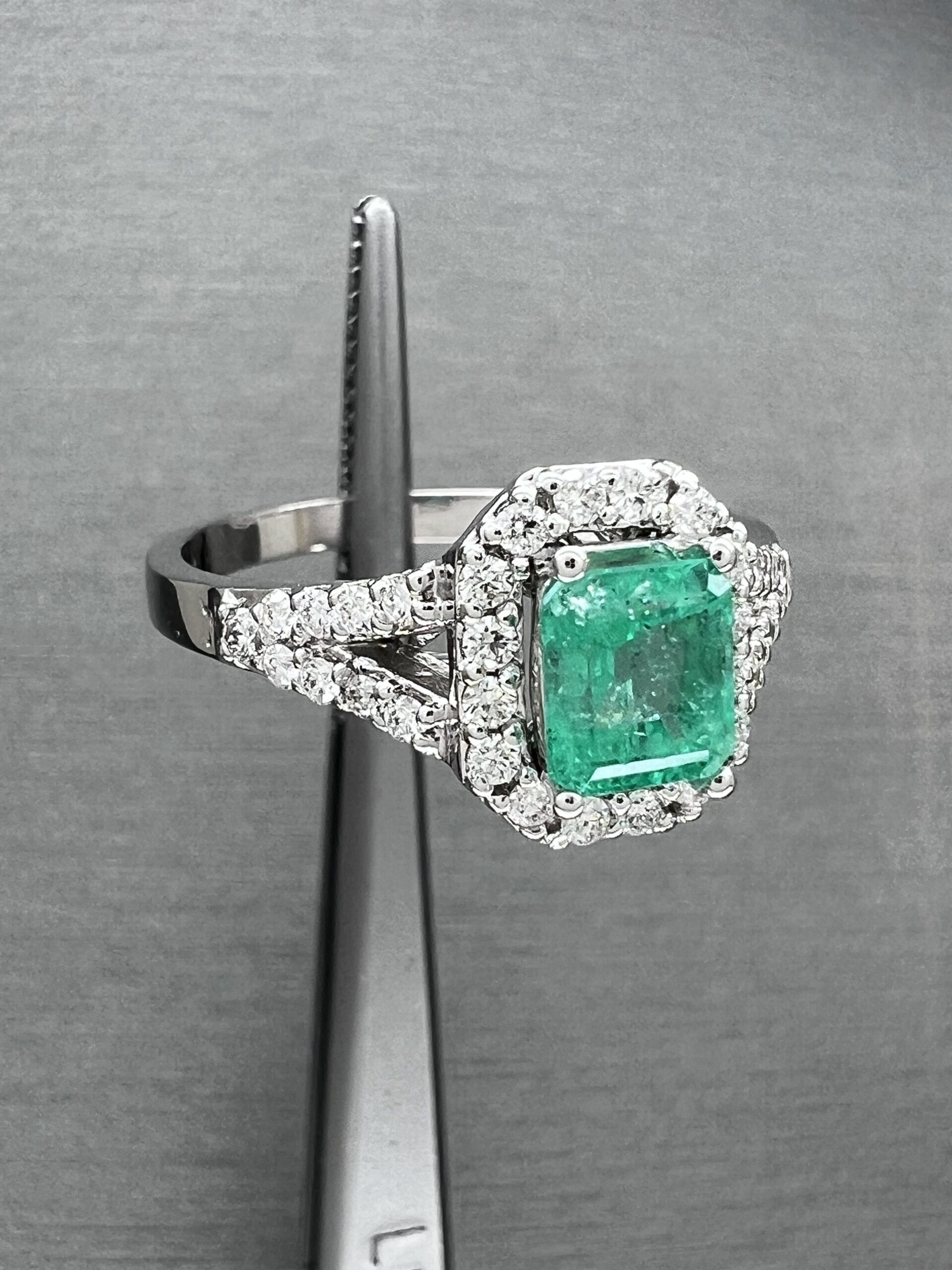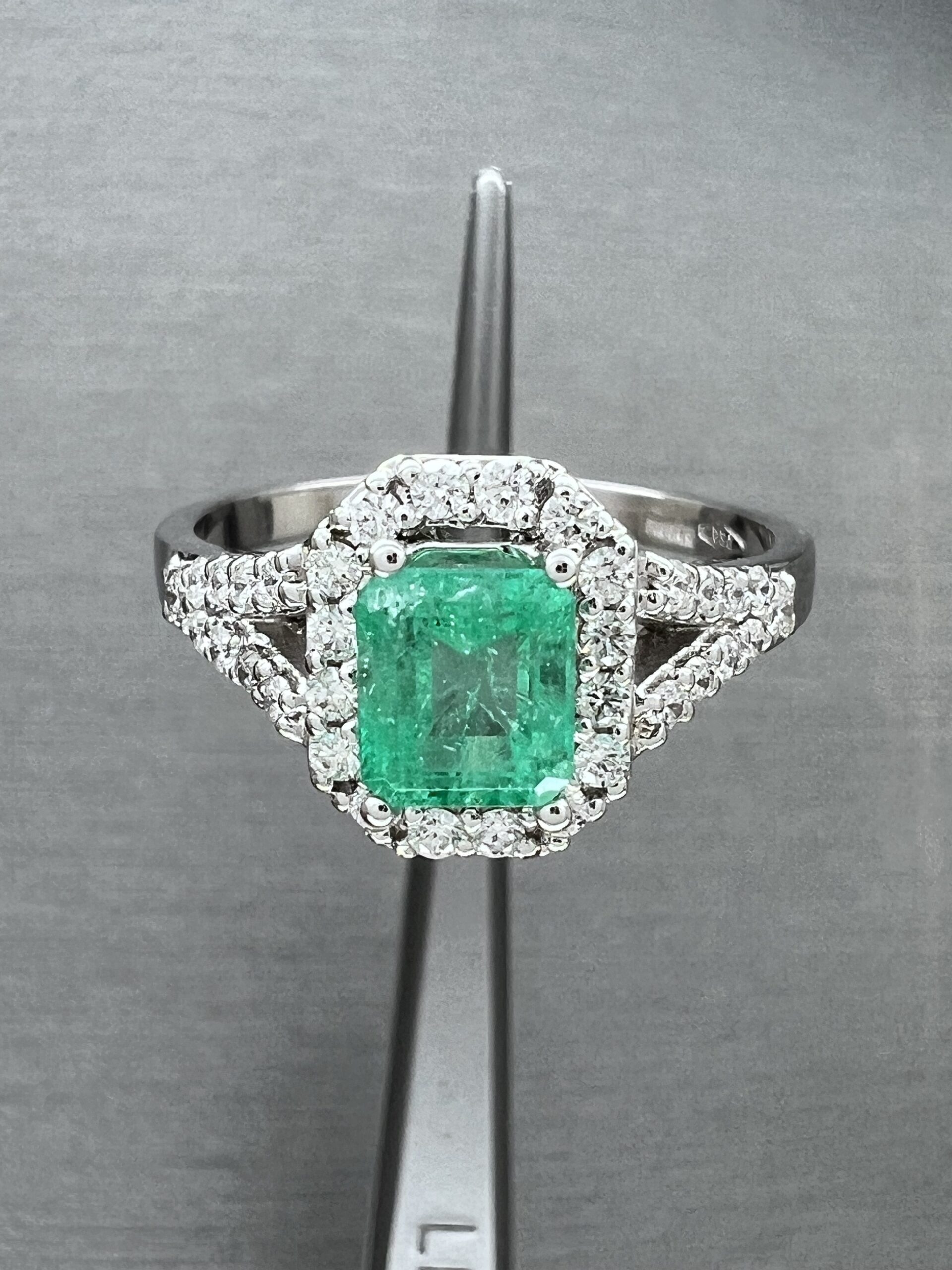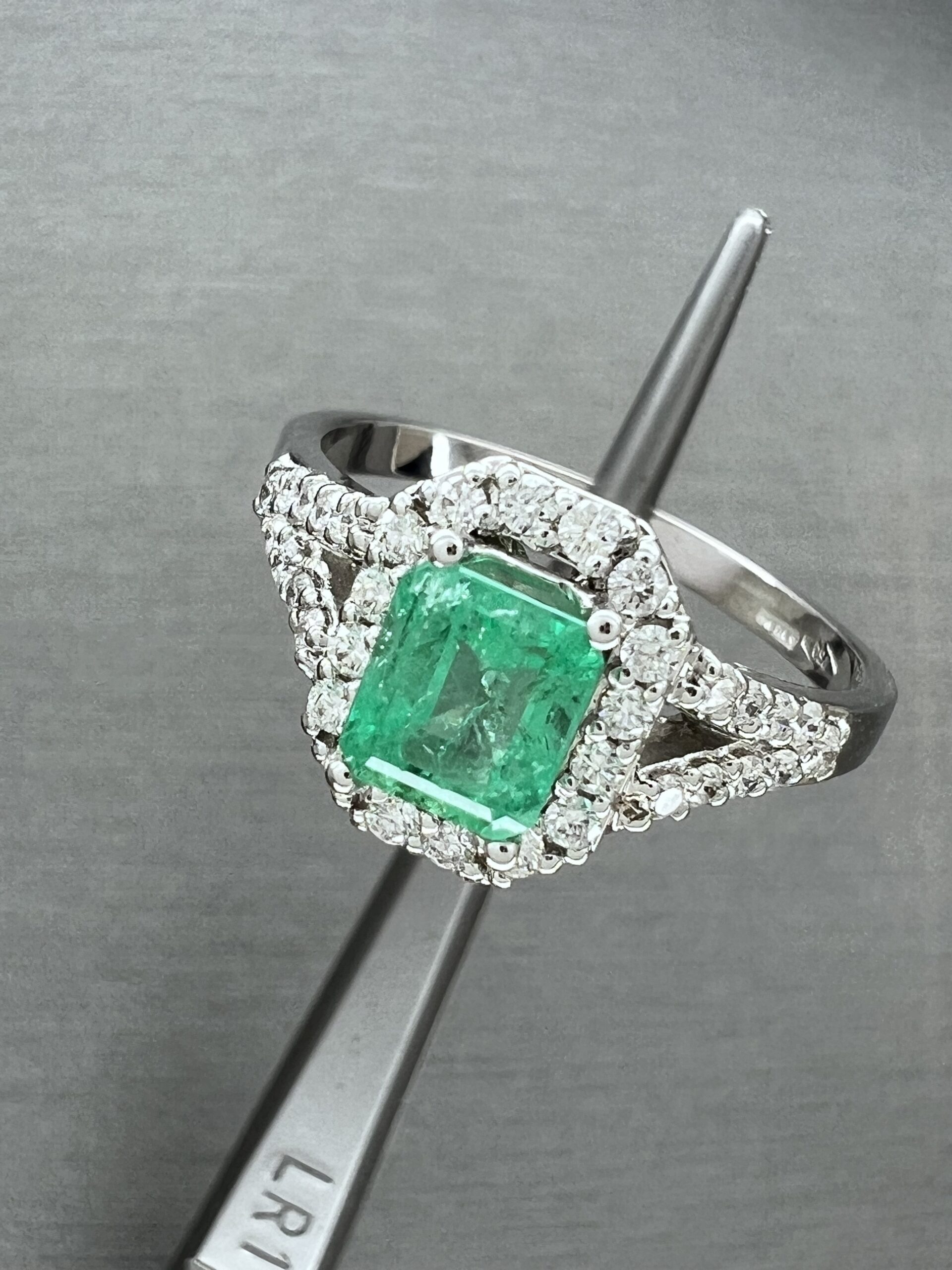 18K White Gold Ring with Natural Emerald 0,66ct and Diamonds 0,31ct