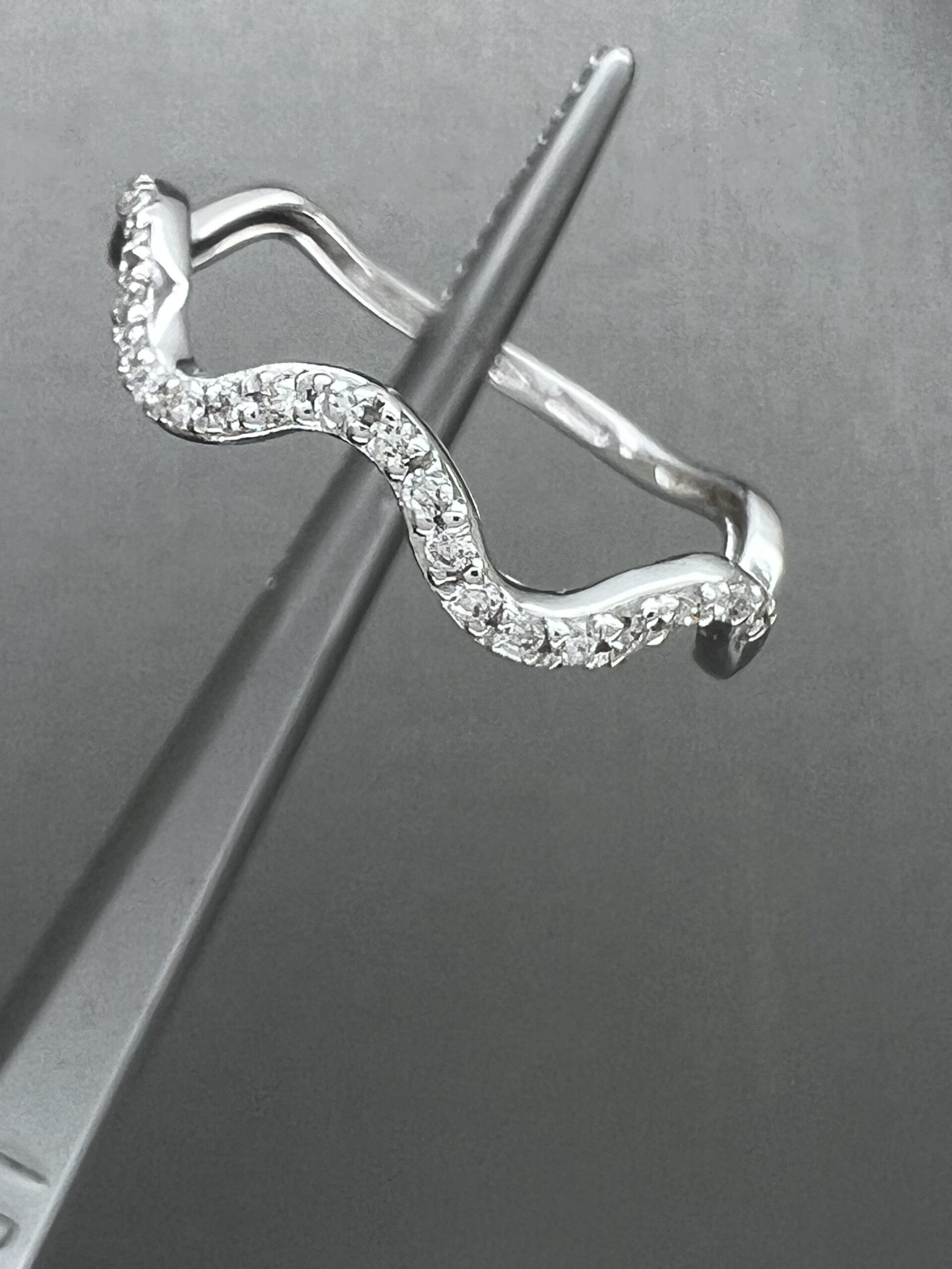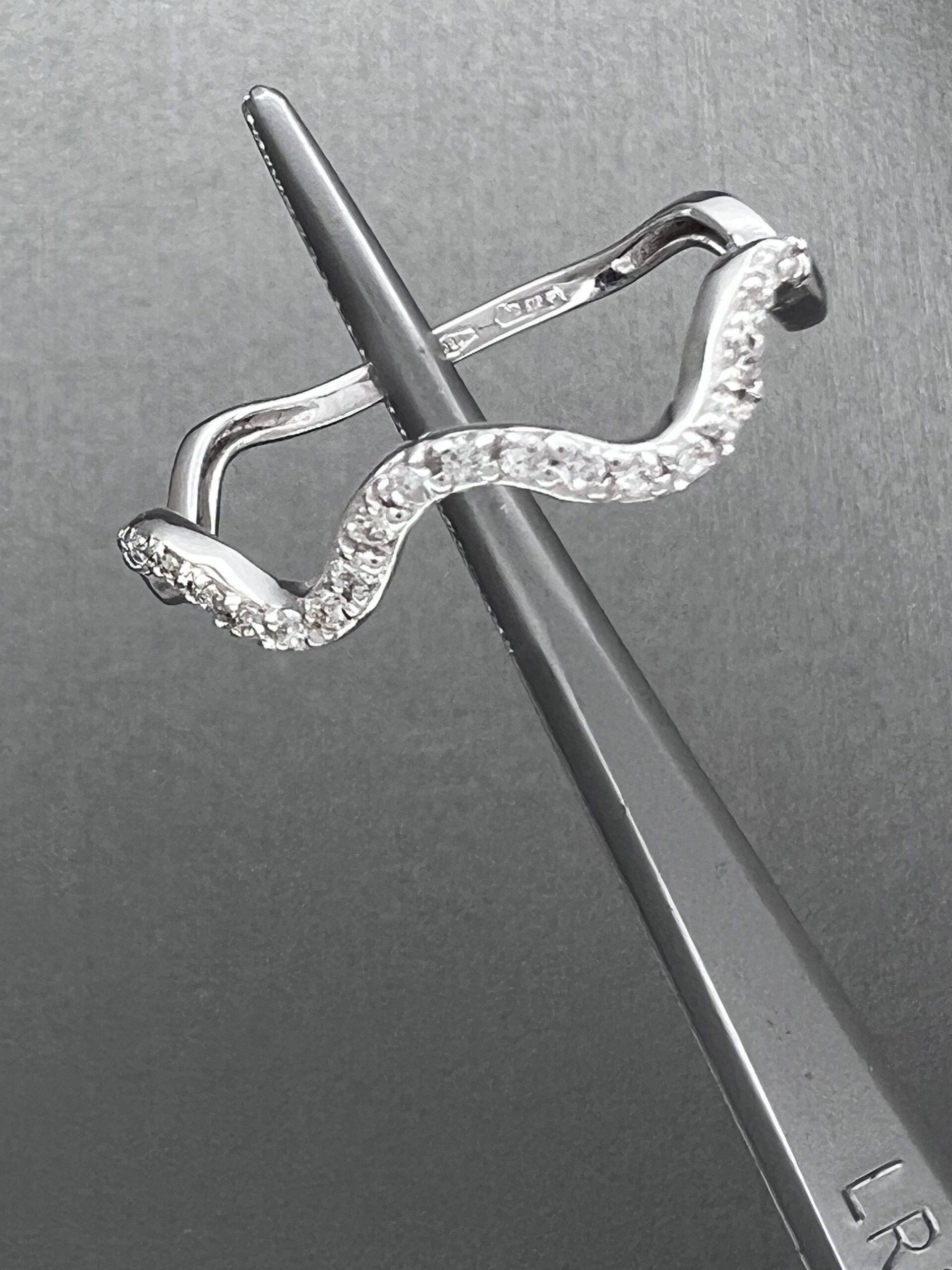 18K White Gold Wavy Ring with Natural Diamonds 0,13ct,F,VVS