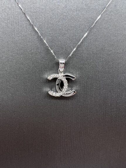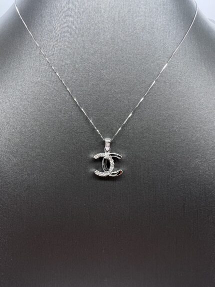 18K White Gold Logo Necklace with Natural Diamonds 0,09ct