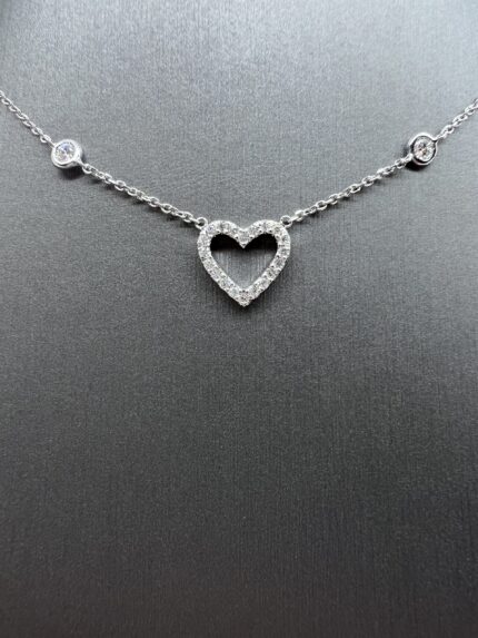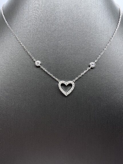 18K White Gold Heart Necklace with Natural Diamonds 0,28ct