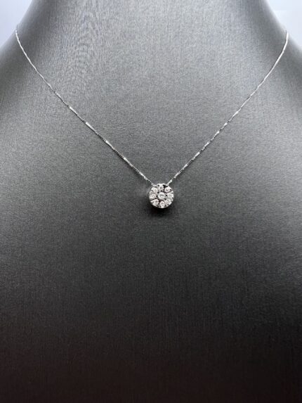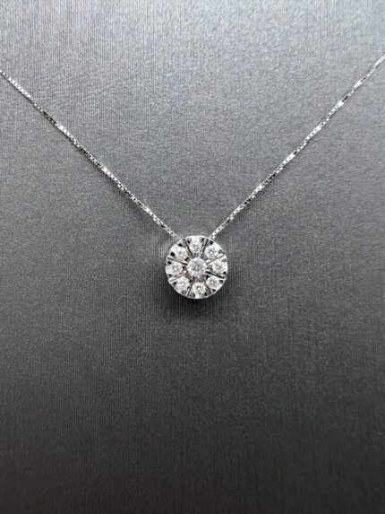 18K White Gold Circle Necklace with Natural Diamonds 0,08ct